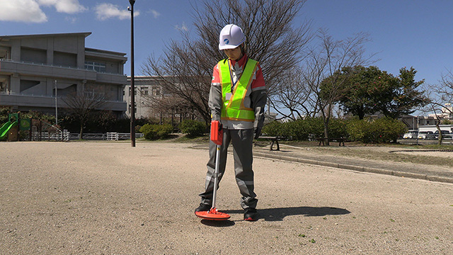 金属探知器を使用し、金属物を探査することができます。主に地中に埋設されてしまった仕切弁蓋などを探査します。
