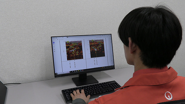 地中レーダを用い、路面を掘削することなく地上から空洞を迅速確実に検出し、ドリルで削孔を行い、空洞の有無と空洞のボリュームを確定することで、陥没事故を未然に防ぎます。