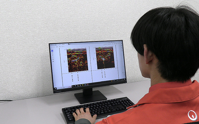 地中レーダを用い、路面を掘削することなく空洞の有無を調査します。
