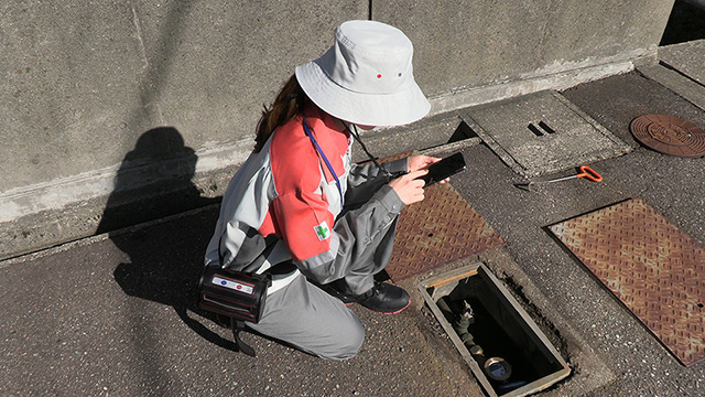 水道メーターの指針値を正確に読み取り、お客さまのご使用された水量を正しく計量します。